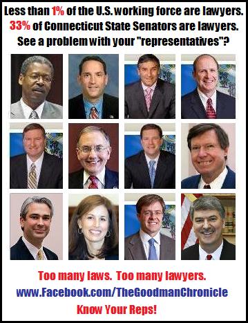 I wrote an article last month, that I believe relates to this issue, titled, "Potential Conflict of Interest: 33% of Connecticut State Senators are Lawyers", which discusses the negative effect of having lawyers, being legislators, and making laws. Lawyers learn to master the use of WORDS to get around, and get away with, corrupt, or immoral, activities. For example, former President Bill Clinton, a lawyer, famously defended his lie about having a sexual relationship with Monica Lewinsky, by saying it all depends on what the definition of the word 'is', is.